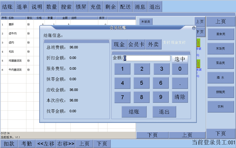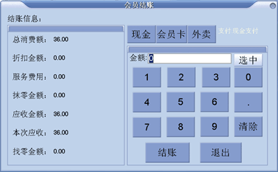 前臺(tái)接待開(kāi)單、點(diǎn)菜、加菜、退菜、附加口味做法、并單、移臺(tái)、房臺(tái)預(yù)訂、菜品預(yù)訂、外賣(mài)、結(jié)單等日常操作;臨時(shí)菜品(菜譜未設(shè)置但本店還能做的菜品)管理;支持現(xiàn)金、免單、簽單、會(huì)員卡、支票、信用卡等多種付款方式;會(huì)員級(jí)別不同可以享受不同級(jí)別的優(yōu)惠;預(yù)訂顯示可以有效防止房臺(tái)沖突;其他簡(jiǎn)單的查詢(xún)和統(tǒng)計(jì)。